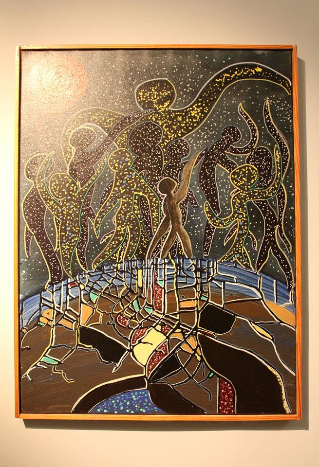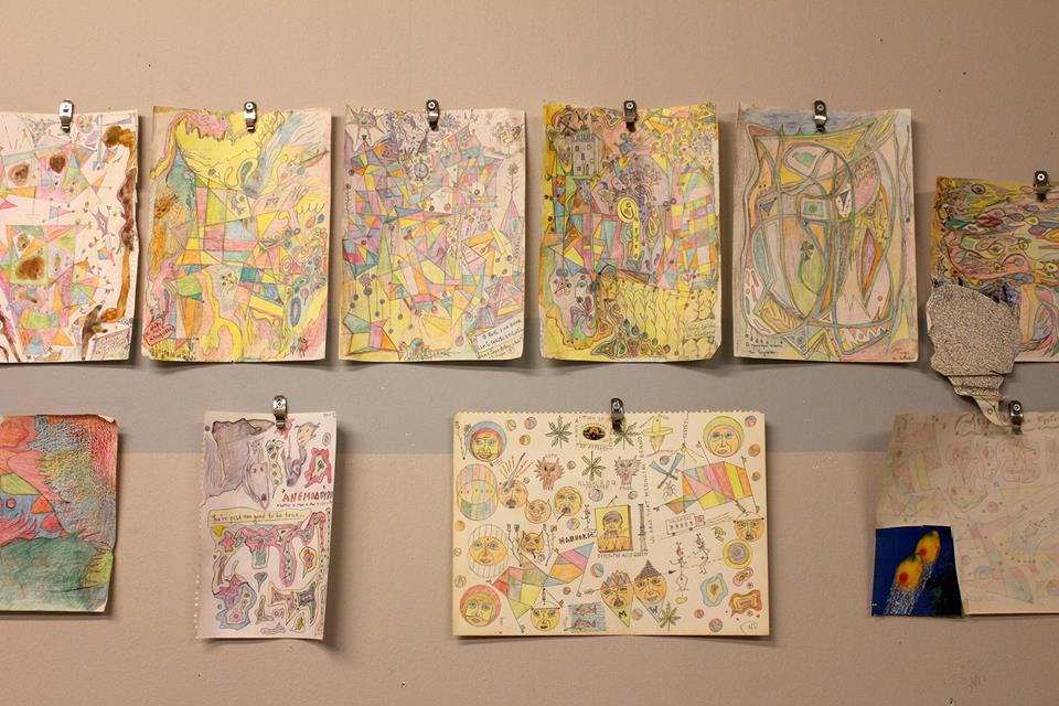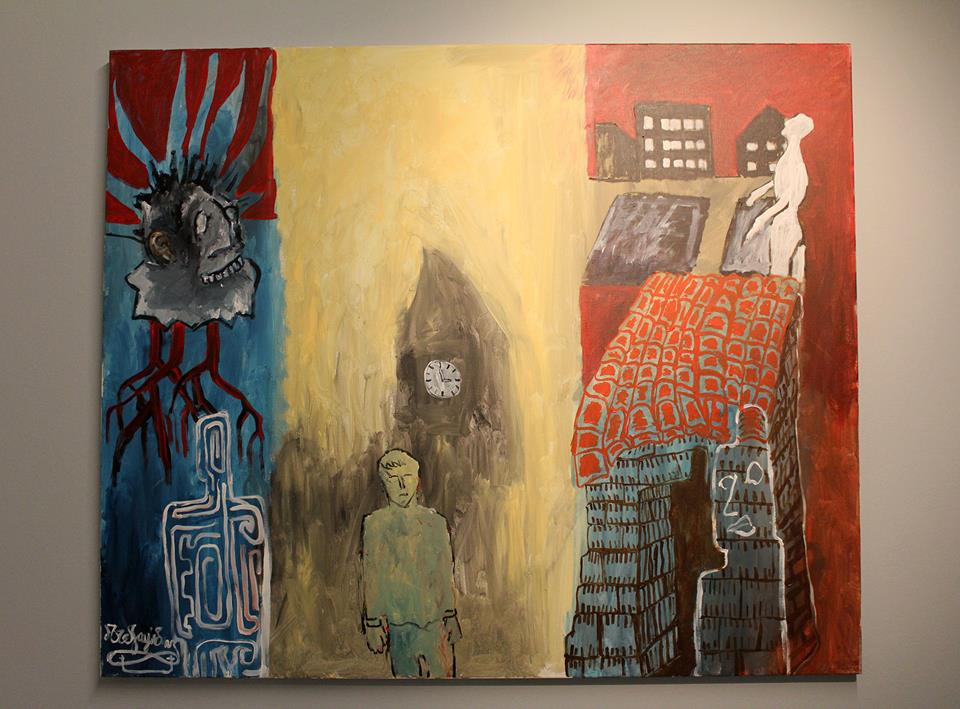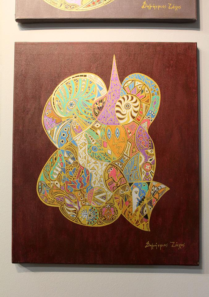 Στην έκθεση παρουσιάζονται έργα των Β. Καλαϊτζή, Θ. Κοπριανού, Δ. Ζάχου, Α. Βανδέρα, Ο. Κασούμη, Δ. Λαΐου, Δ. Ρακογιάννη, Χ. Κερίδη, Θ. Τζανταρμά, Χ. Ζαπουνίδη, Π. Τεζαψίδη και Ν. Τσιμινά, τα οποία προέρχονται κυρίως από τη συλλογή του ψυχιάτρου-εικαστικού Παύλου Βασιλειάδη αλλά και από τις συλλογές των ίδιων των δημιουργών.